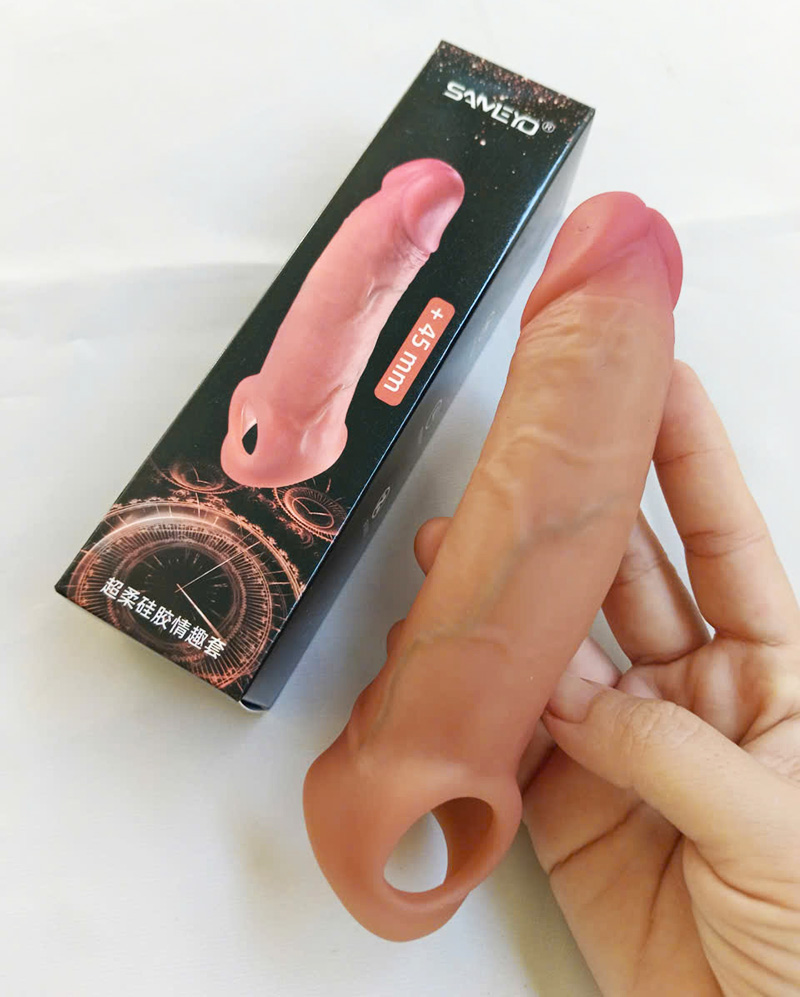 Bao cao su đôn dài thêm 4.5cm được thiết kế nhiều gân mạch máu nổi đẹp mắt vô cùng ấn tượng vì giống thật đến 99%. Bao cao su đôn dên màu da người cao cấp được người dùng thích thú bởi độ mềm mại và màu sắc như da người thật, chất liệu silicon mềm mại chống bám bẩn tốt, an toàn khi sử