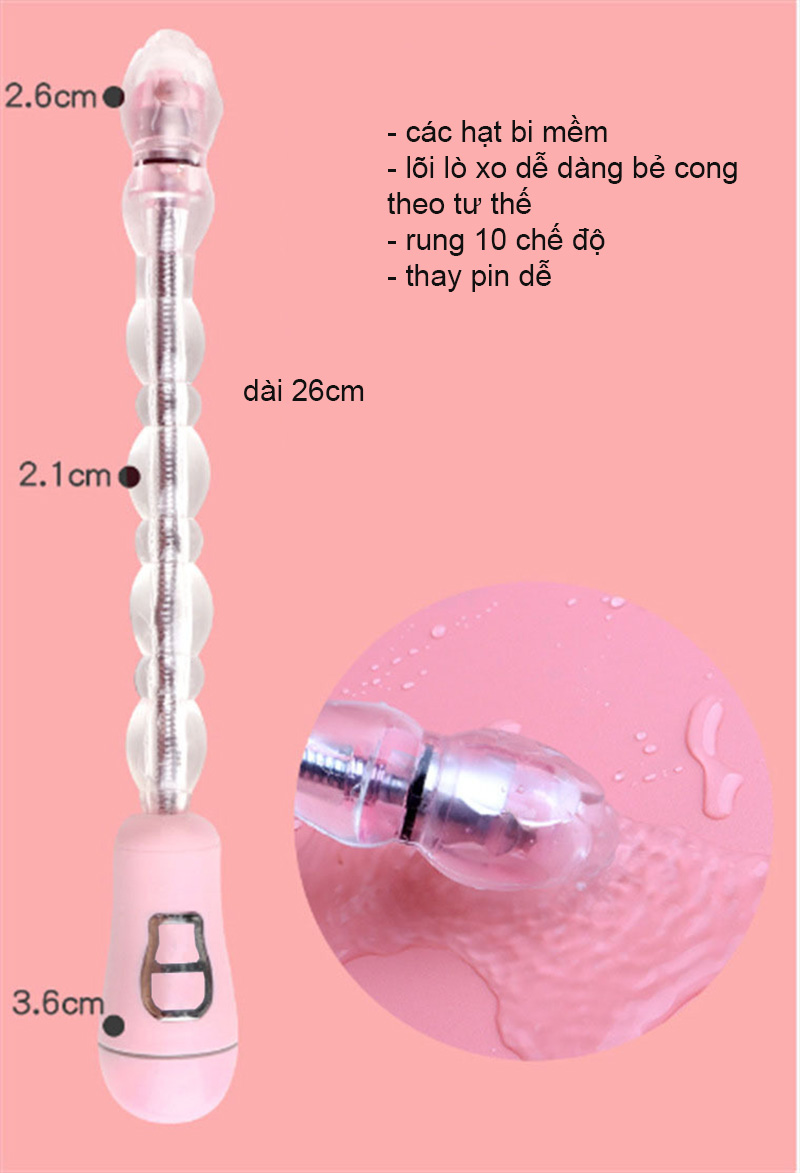- Ưu điểm của que rung hậu môn này là các hạt silicon mềm, lõi lò xo có thể uốn cong theo ý thích