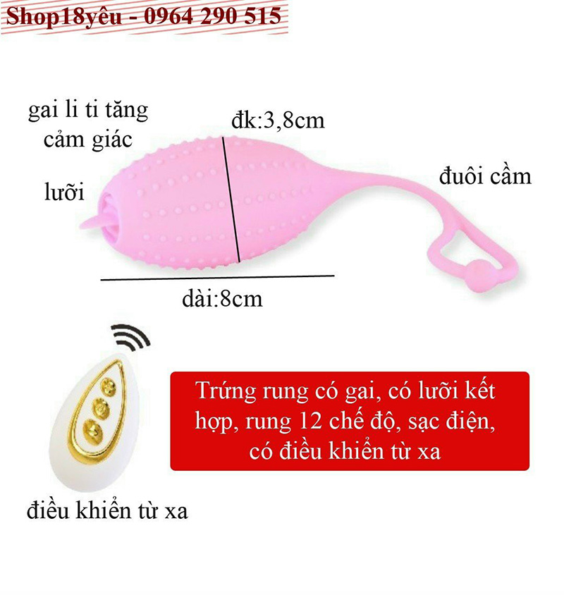 Trứng rung gai điều khiển từ xa có lưỡi 10 chế độ rung cực mạnh là sản phẩm đồ chơi tình dục phổ biến hiện nay, với thiết kế nhỏ gọn, gai nhỏ trên thân giúp quá trình cọ sát cao, lưỡi nhỏ mini kết hợp sẽ giúp các chàng đưa nàng lên đỉnh một cách nhanh chóng và dễ dàng nhất.